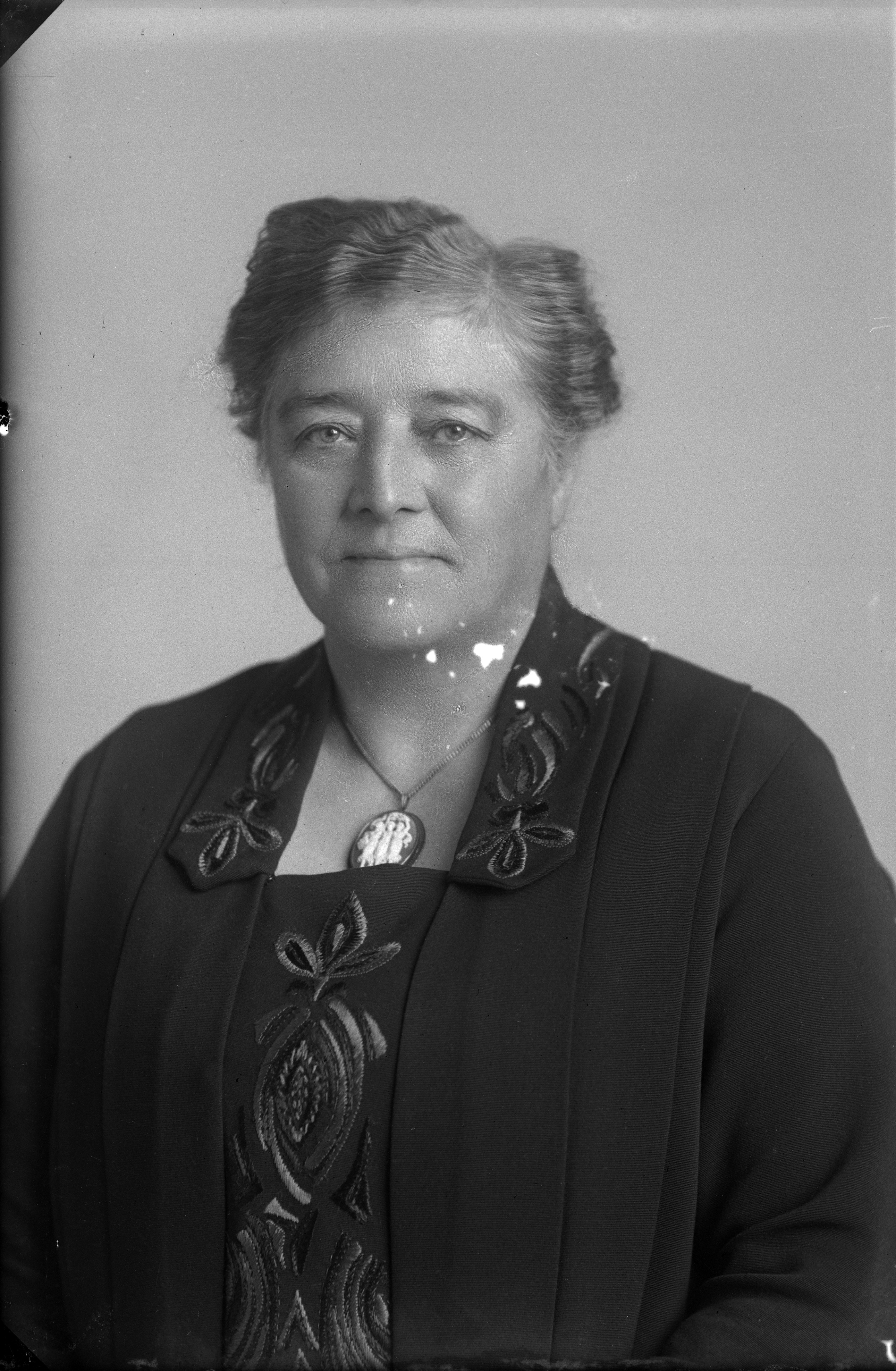 Beskrivning: Porträtt i halvfigur av fru Linde.