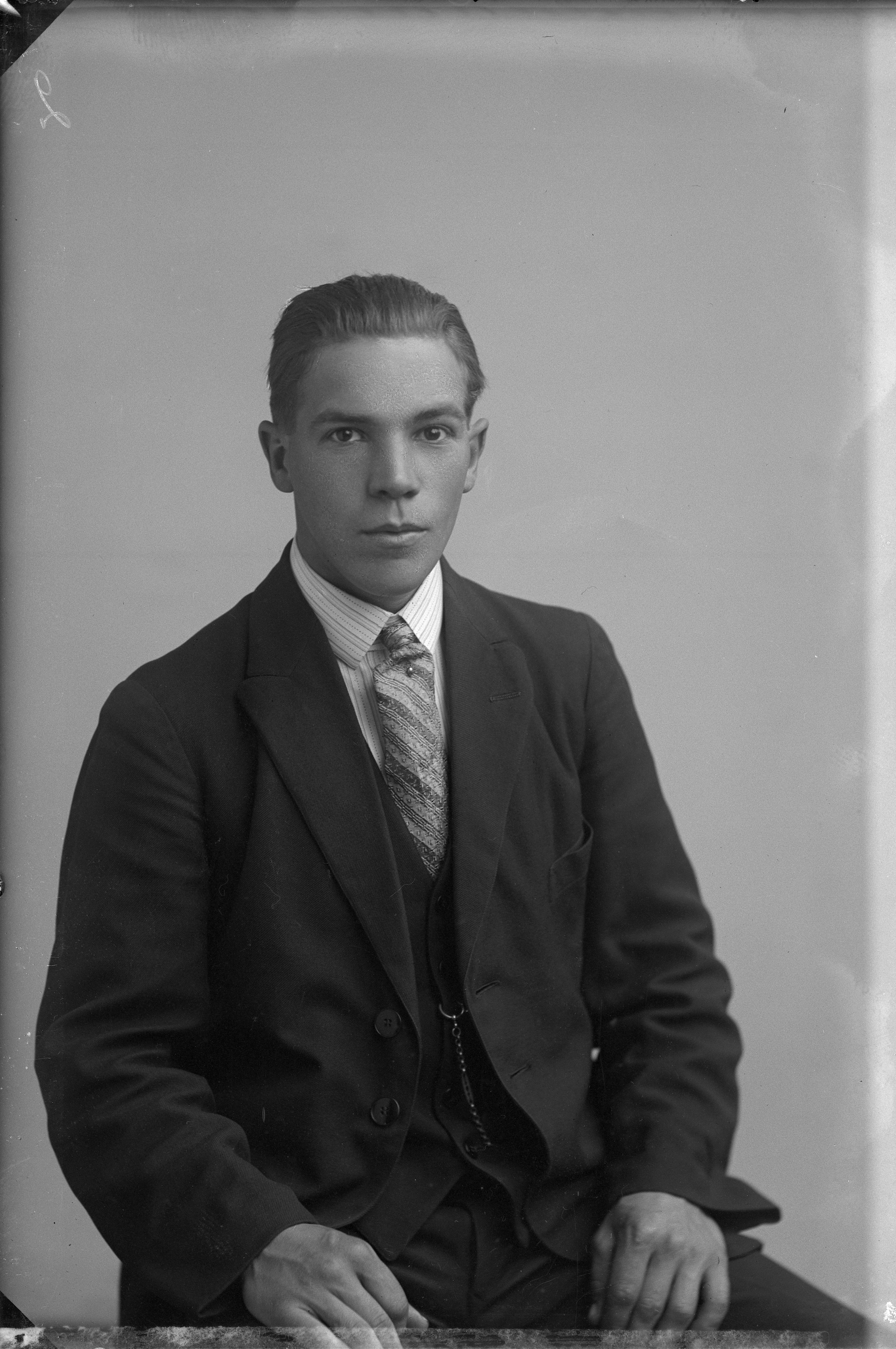 Beskrivning: Porträtt i halvfigur av Erik Hult.