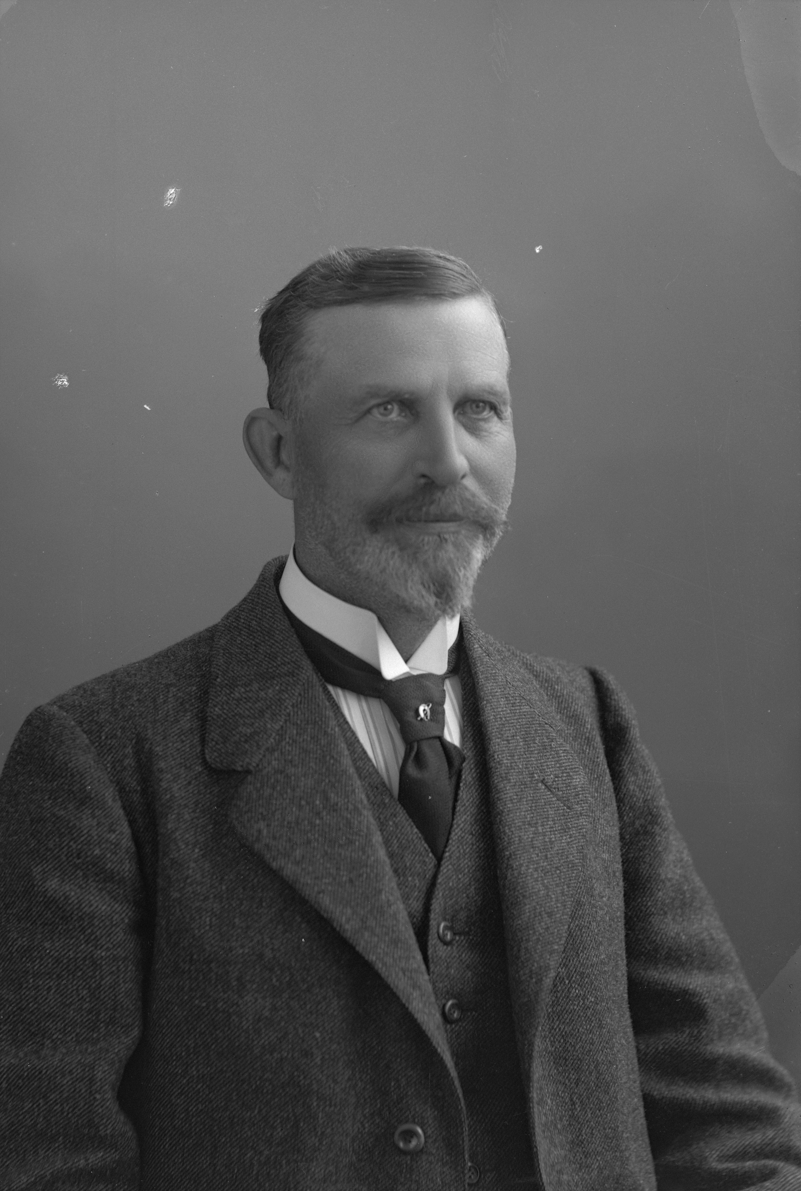 Beskrivning: Porträtt i halvfigur av herr Mattsson i Vellinge.