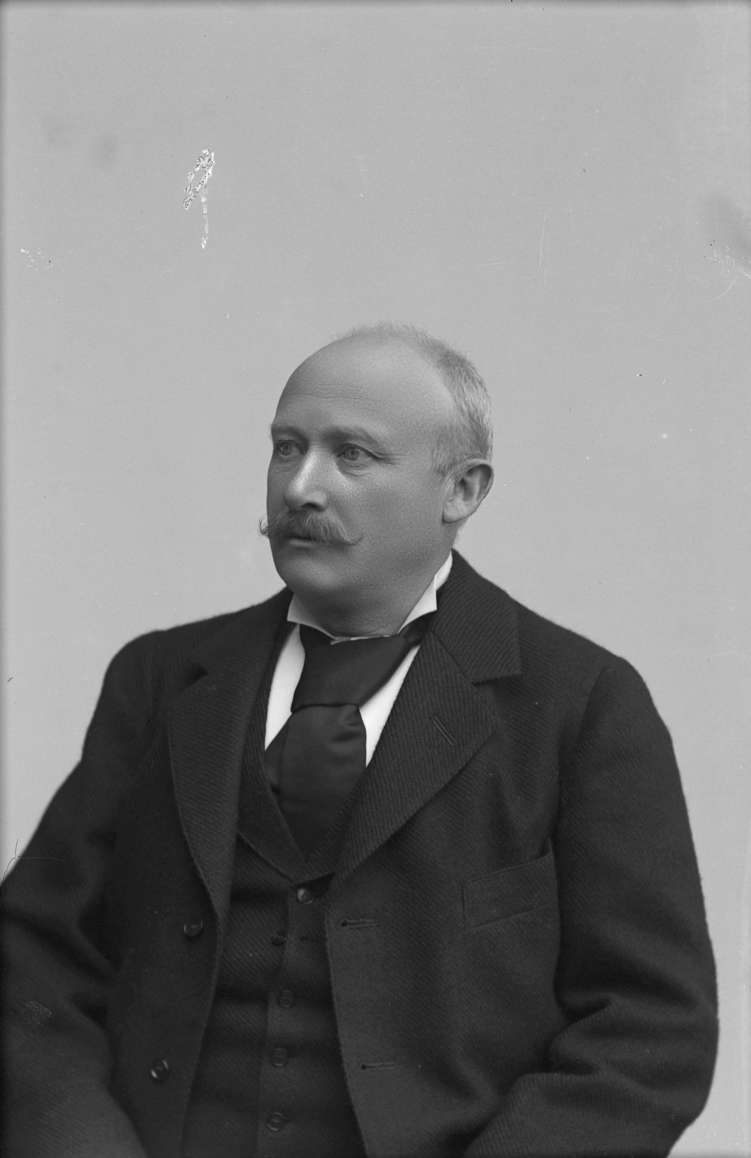 Beskrivning: Porträtt i halvfigur av stationsskrivare Löwegren.