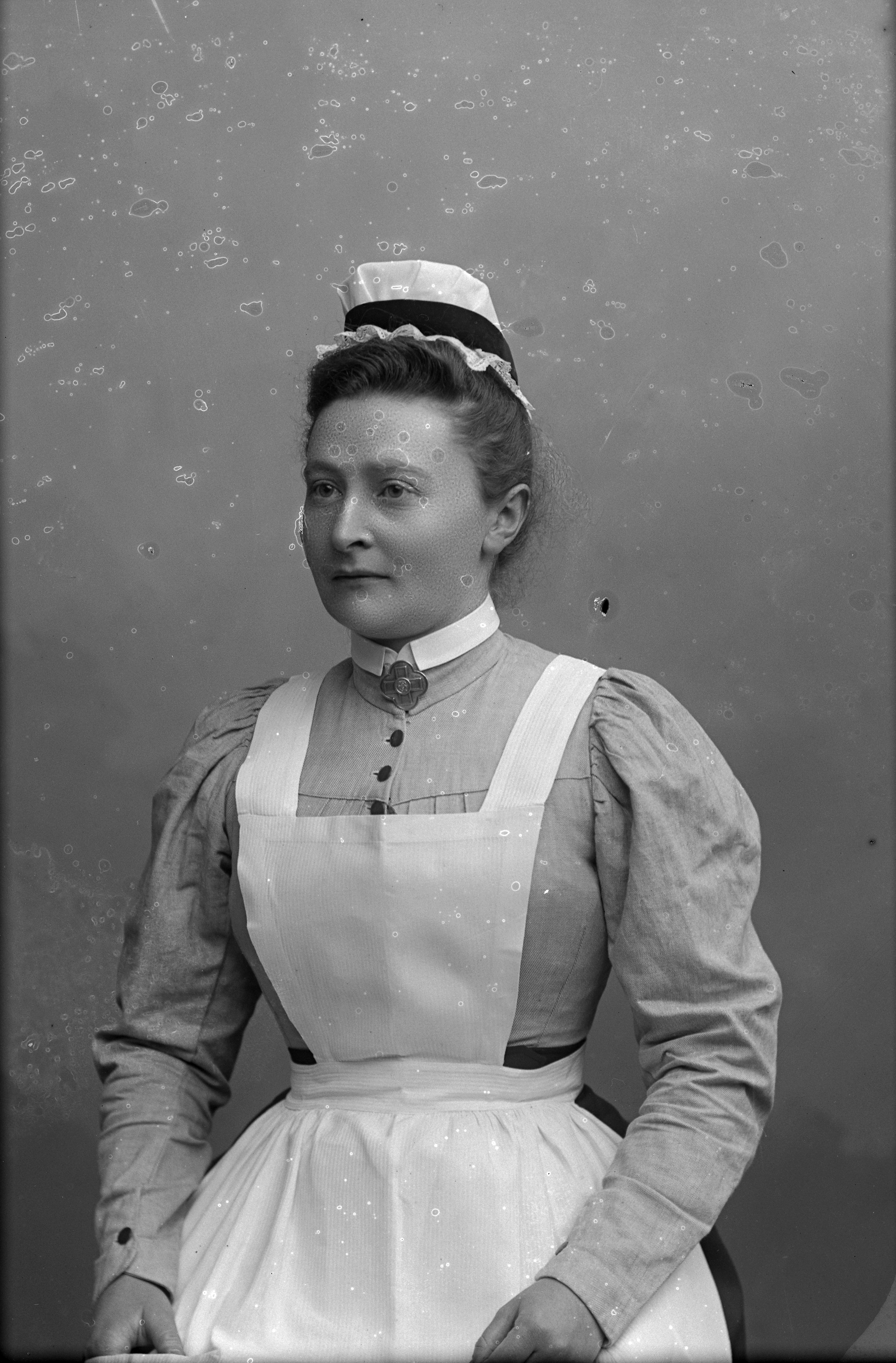 Porträtt i halvfigur av Eva Streijffert, iklädd sjuksköterskeuniform.