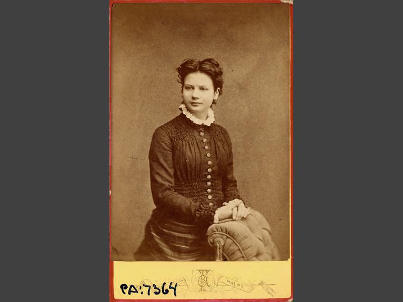 Beskrivning: Visitkortsfotografi. Porträtt av Selma Gans.