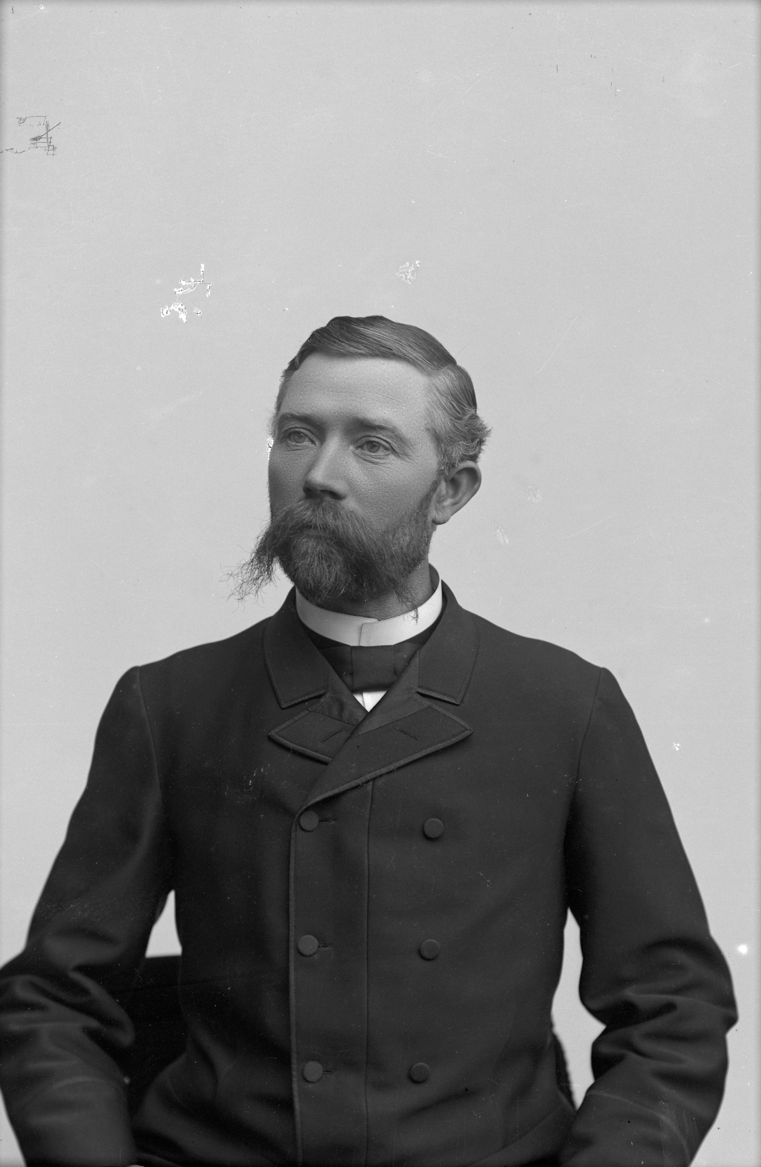Porträtt i halvfigur av konduktör Karl Krantz, iklädd SJ-uniform.