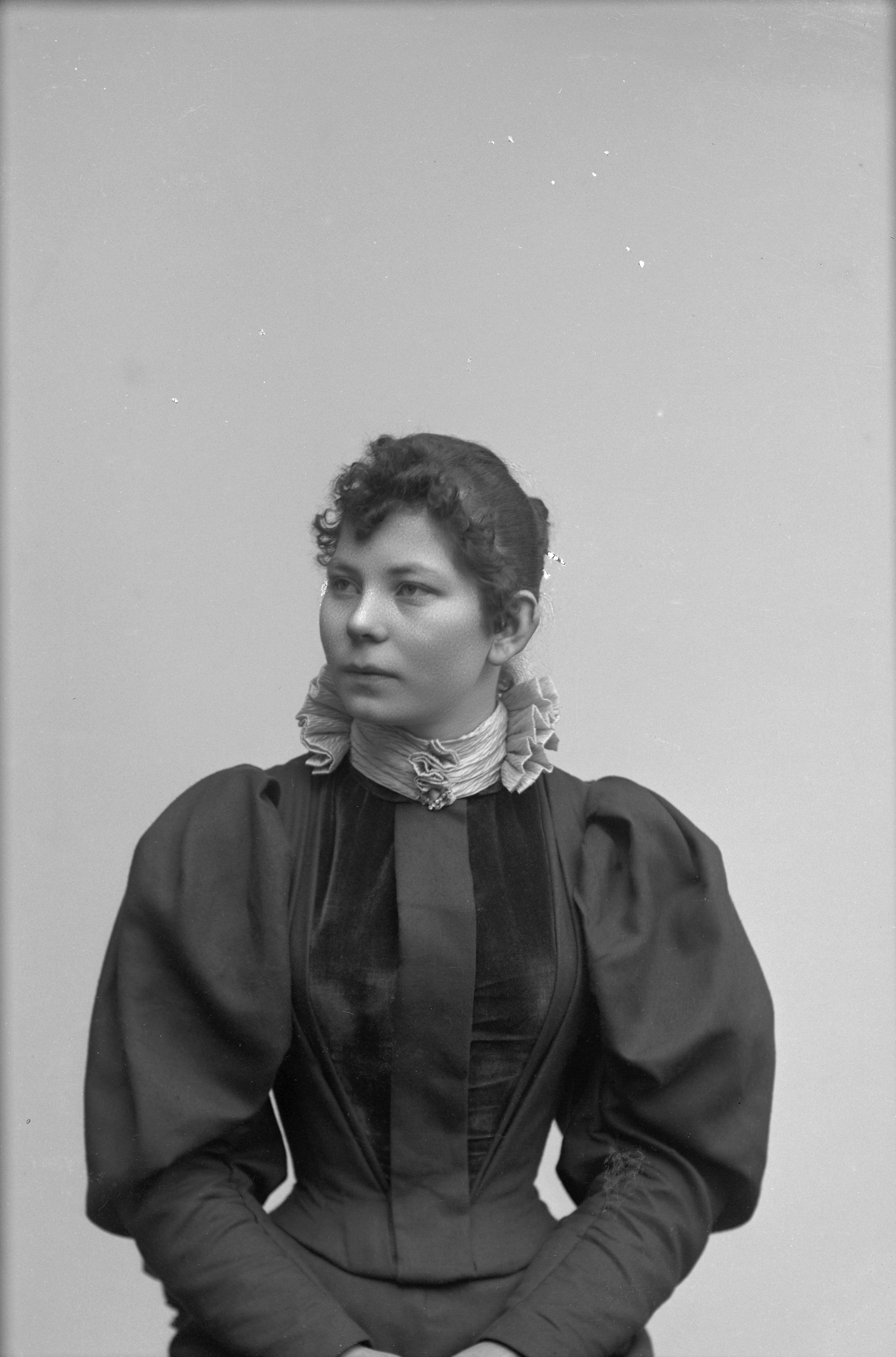 Beskrivning: Porträtt i halvfigur av Otilda Johansson.