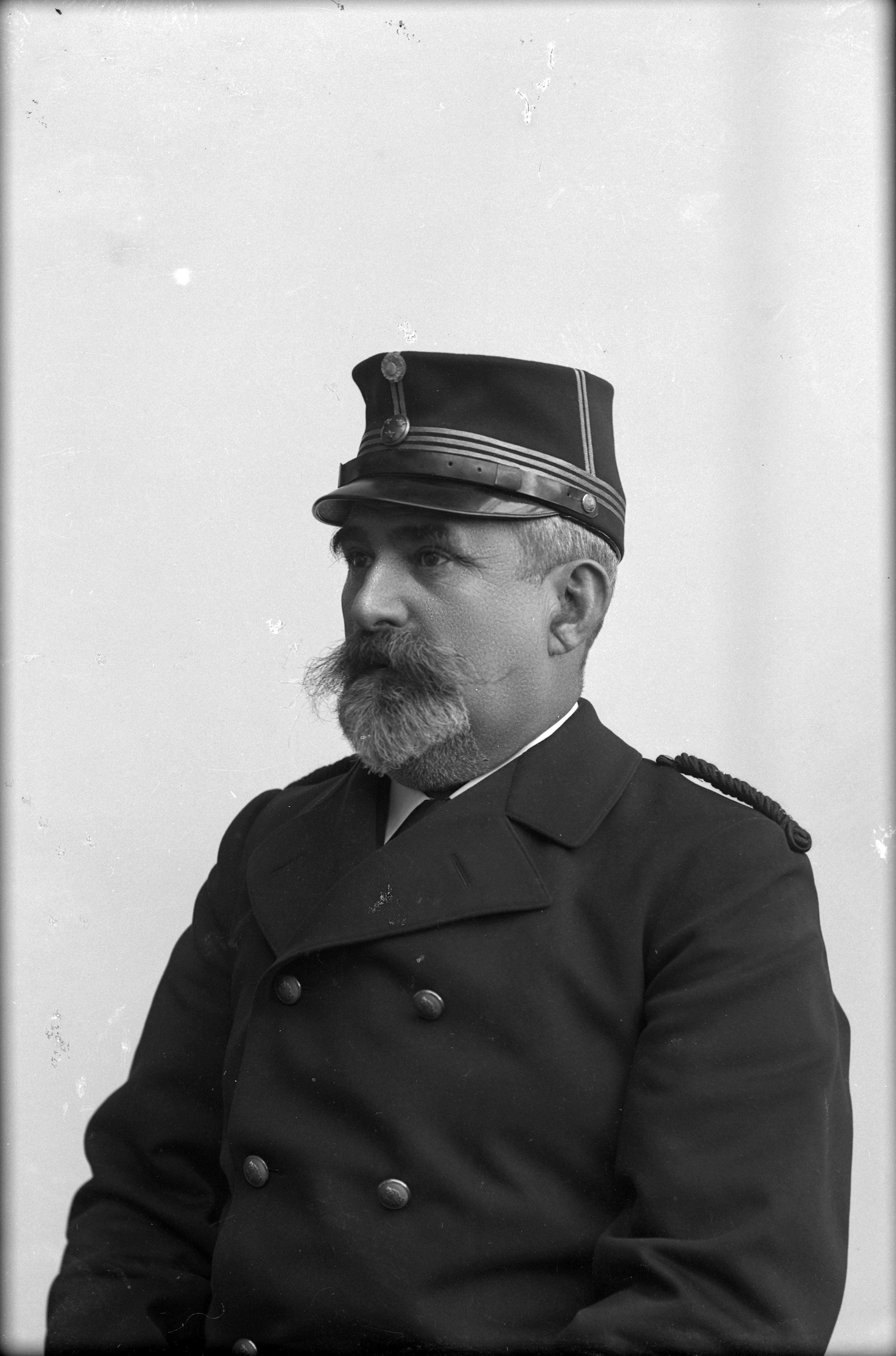 Porträtt i halvfigur av regementsveterinär Hedvall, iklädd militäruniform.