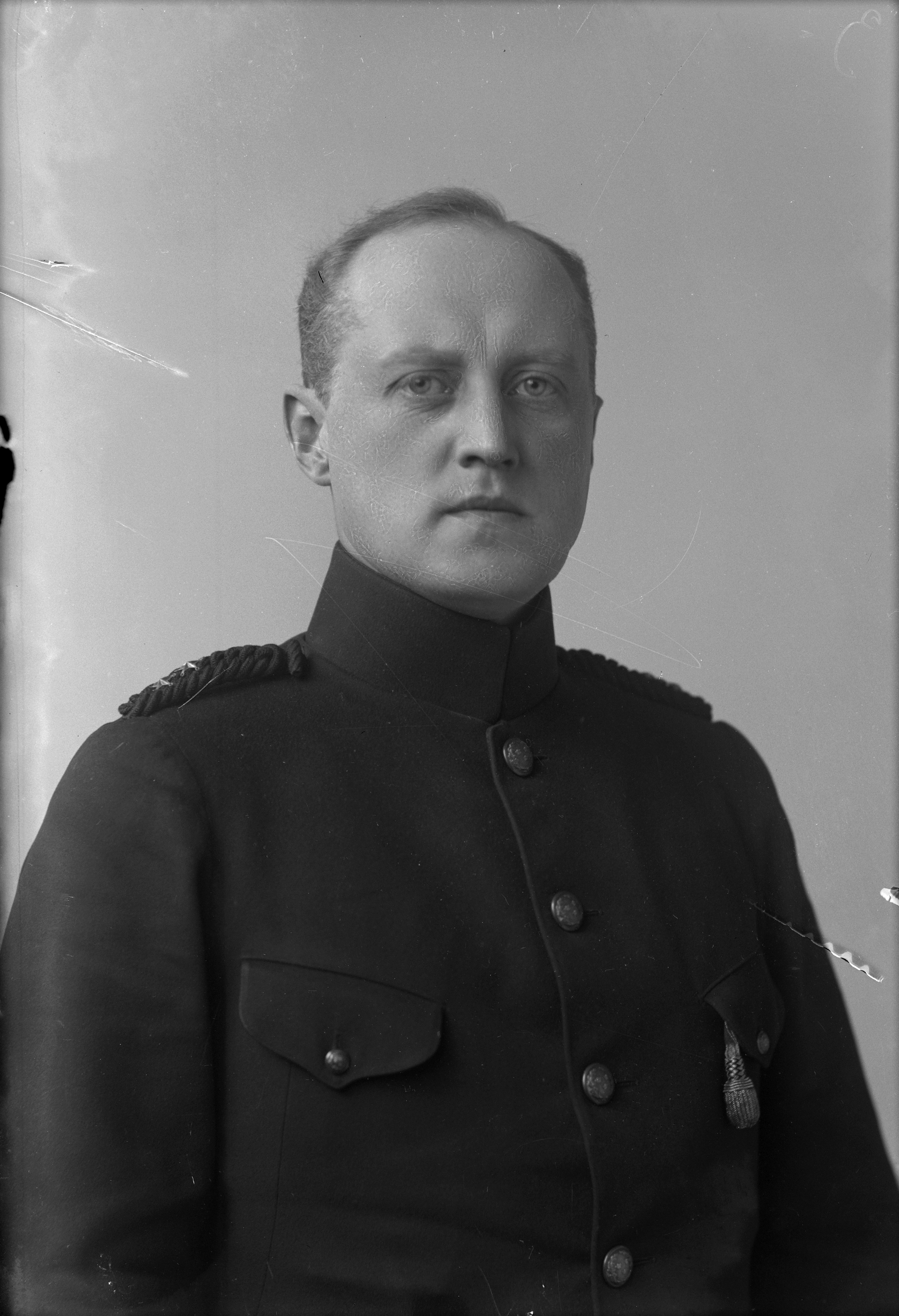 Porträtt i halvfigur av jägmästare F. Barnekow, iklädd yrkesklädesel.
