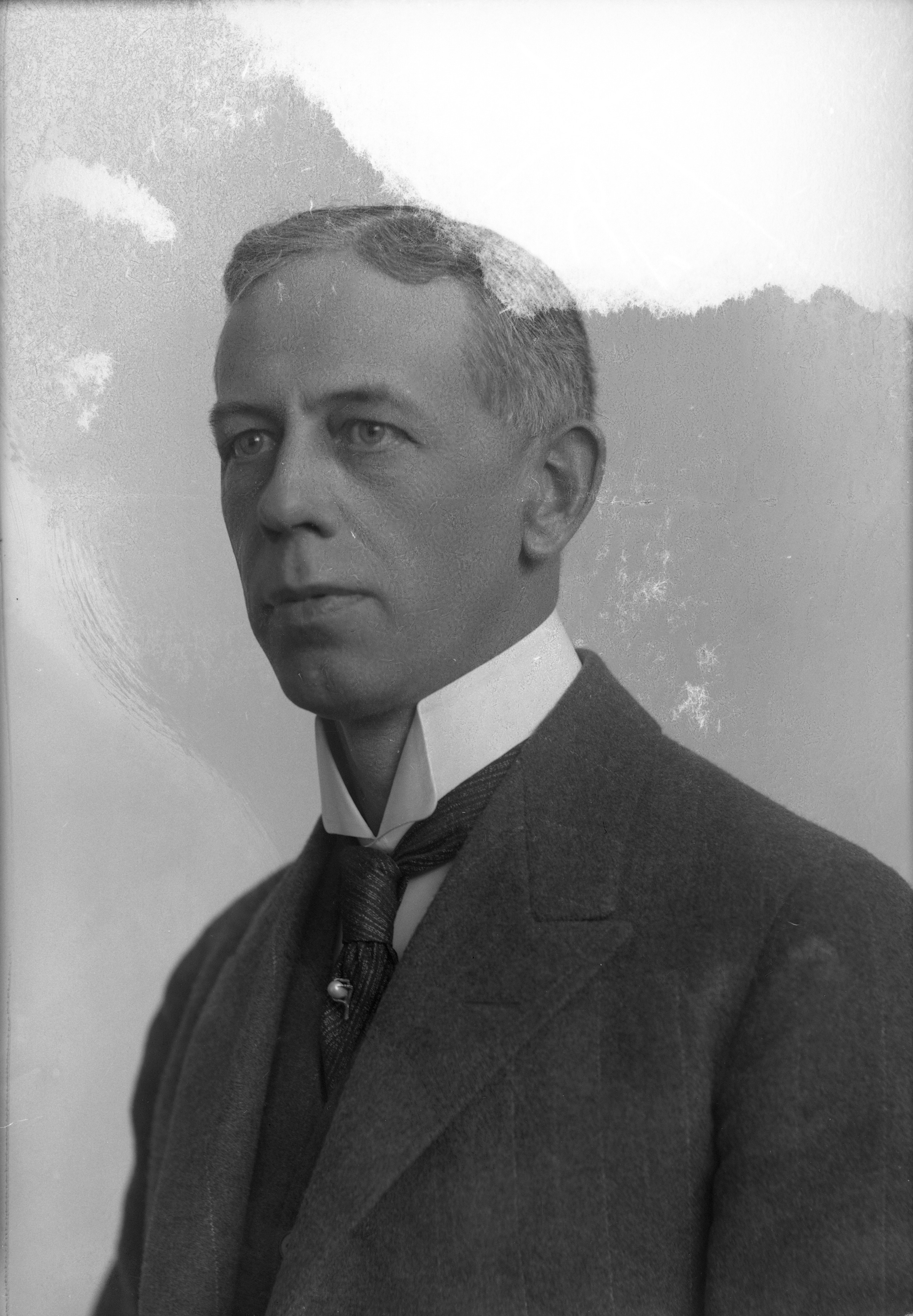 Beskrivning: Porträtt i halvfigur av professor Forsberg.