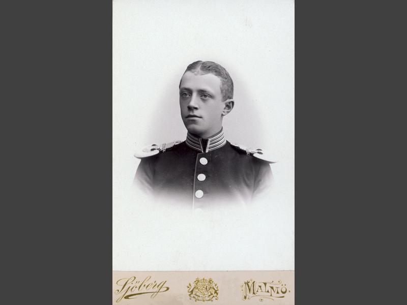 Beskrivning: Visitkortsfotografi. Porträtt av (förnamn?) Elfgren i uniform.