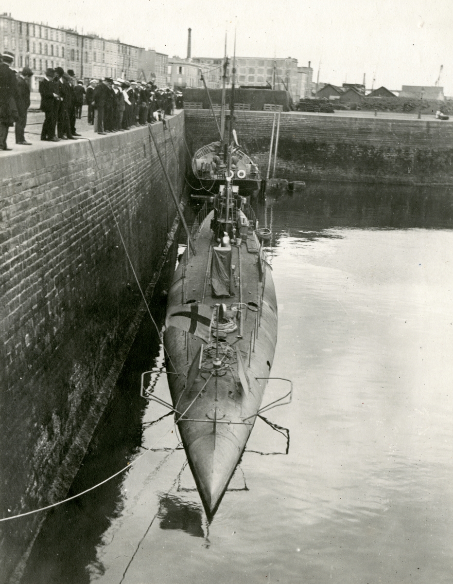 Titel: Ubåten HVALEN förtöjd vid kaj.