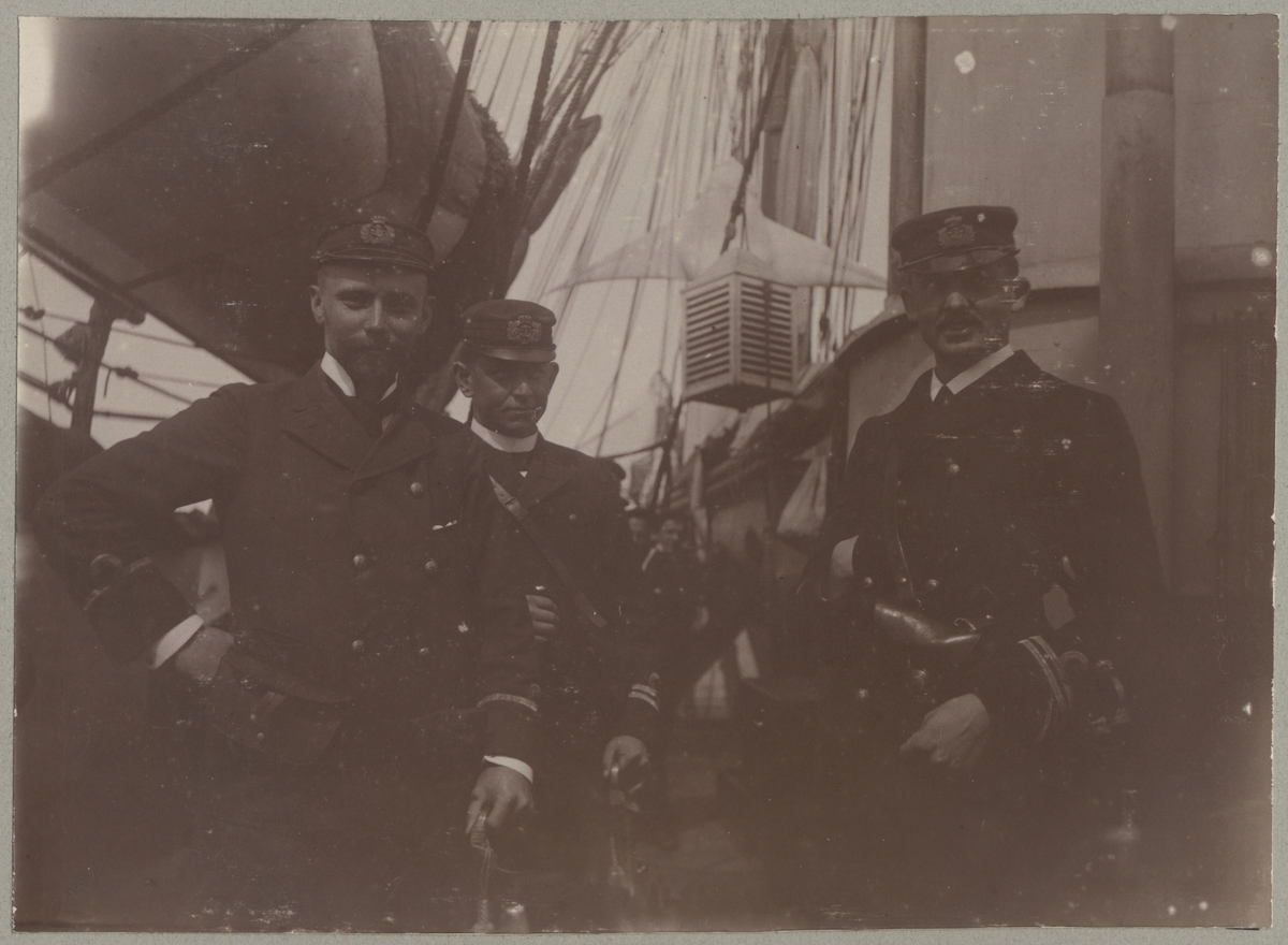 Titel: Bilden visar tre sjöofficerare ombord på Balder.