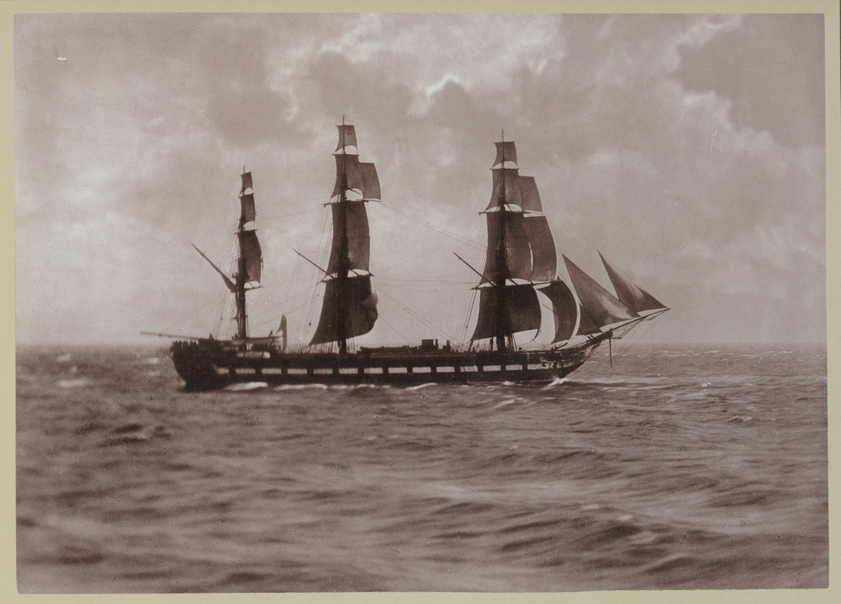 Bilden visar den tyska fregatten SMS Hertha under segling till havs.