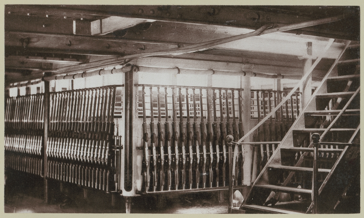 Bilden visar förvaring av gevär på batteridäcket av korvetten Stosch.