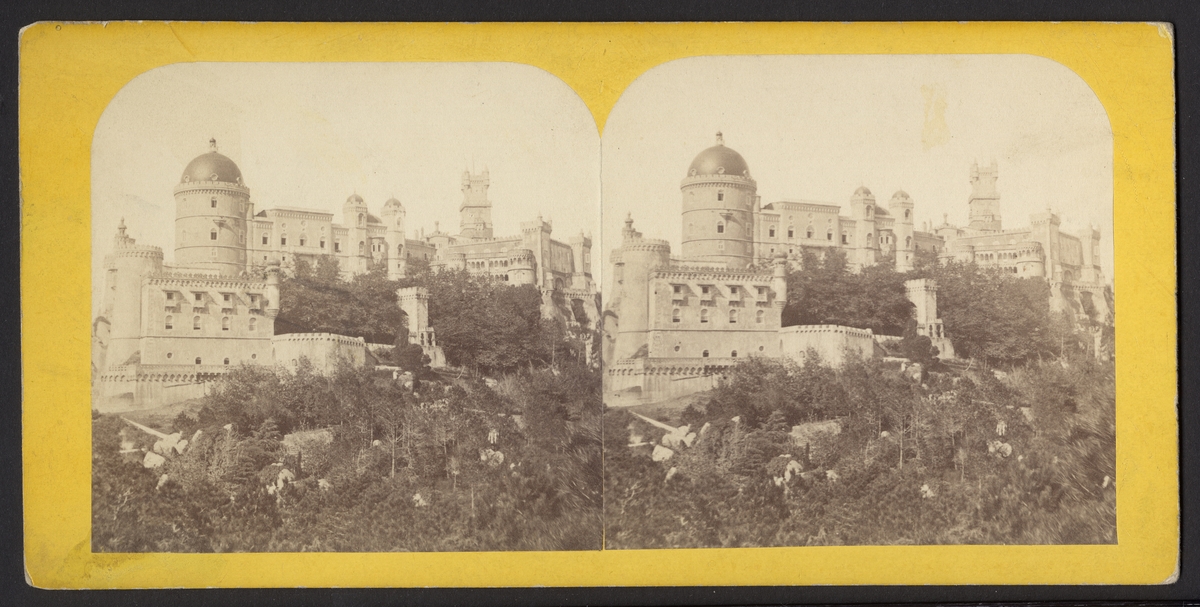 Titel: Bilden föreställer en stereoskopi av Palácio Nacional da Pena i Sintra.