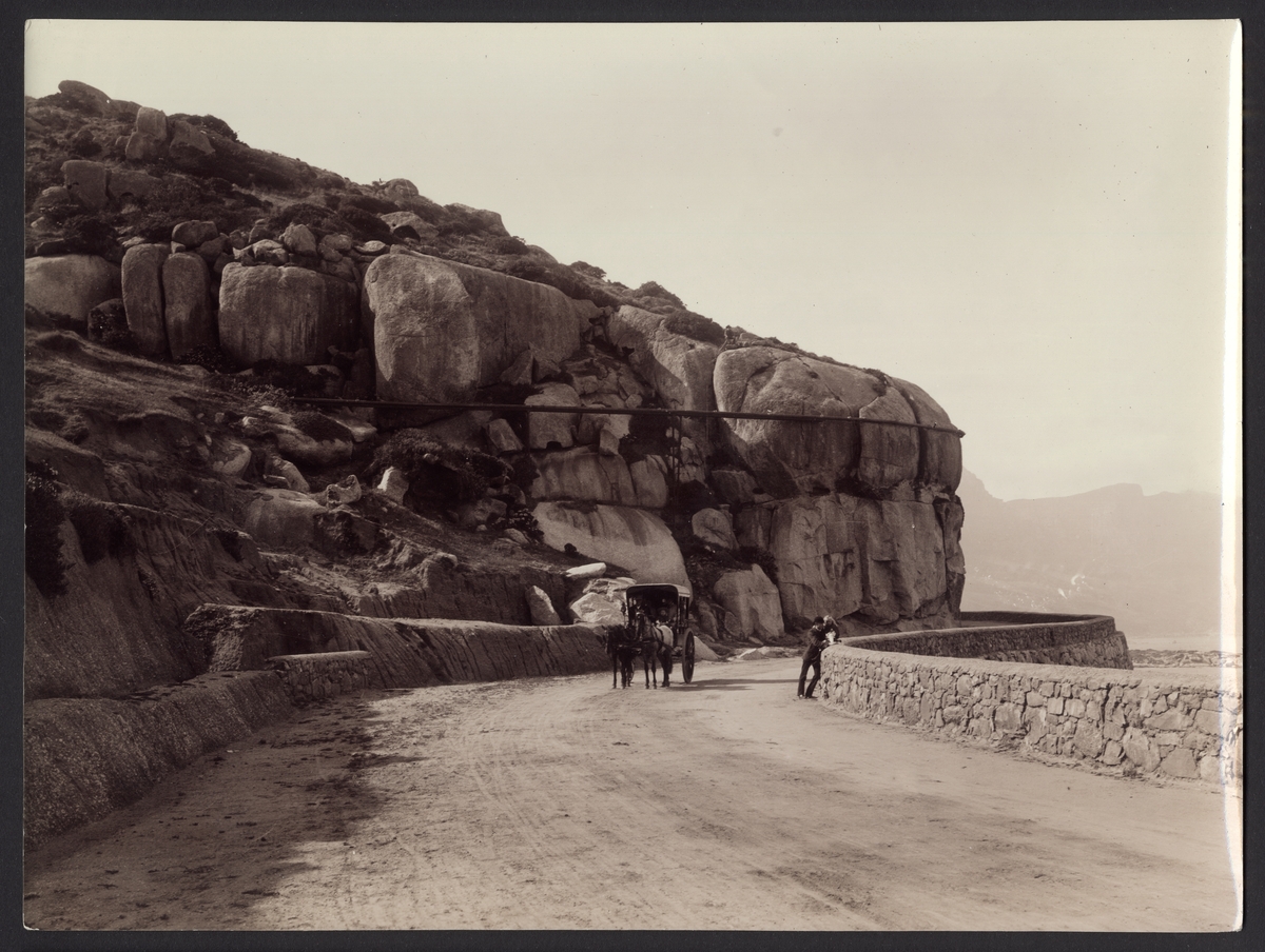 Titel: Bilden visar en kustväg med hästfordon nära Kapstaden.