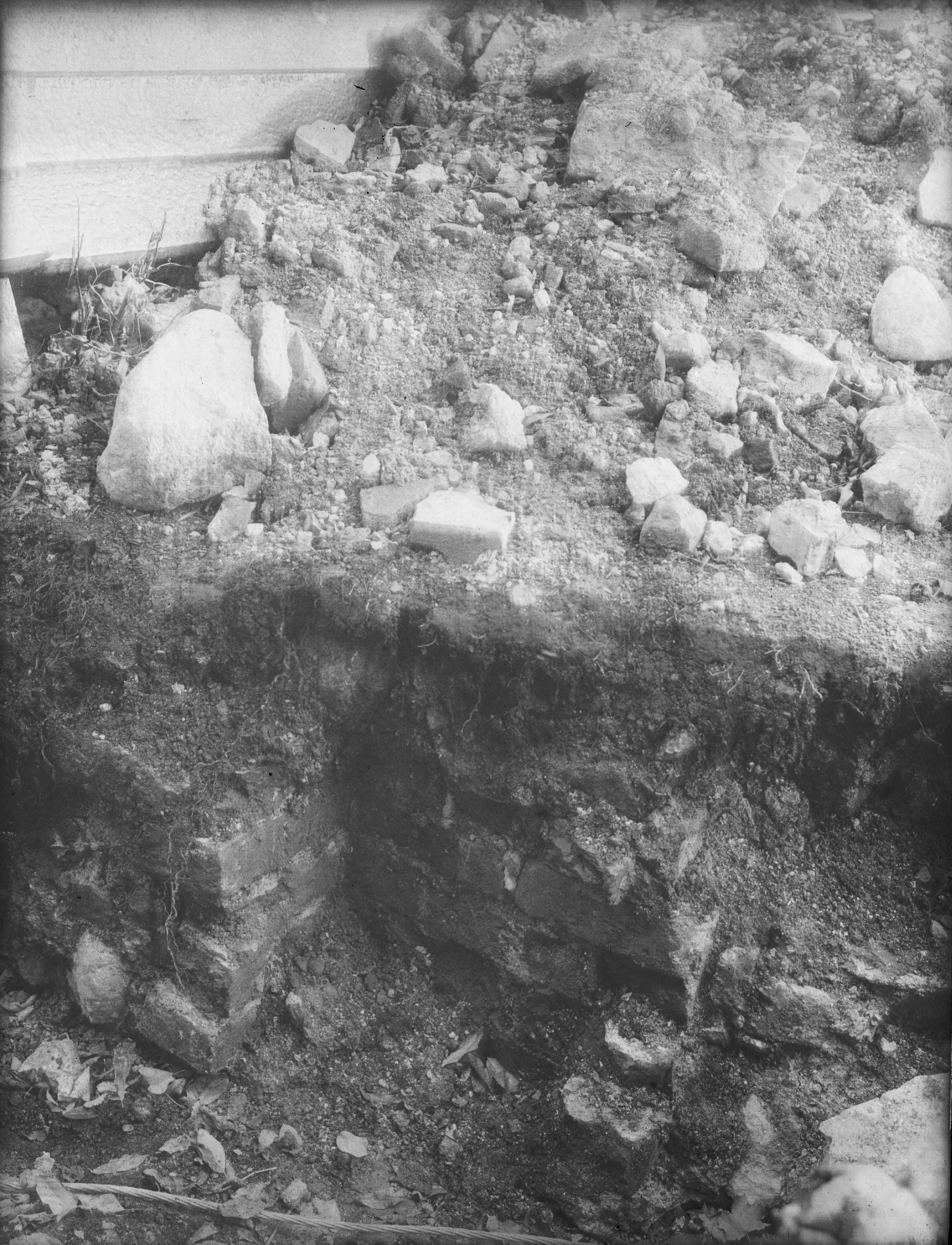 Mur mellan A-salens och östra korsgången. Östra partiet. Från nordväst.