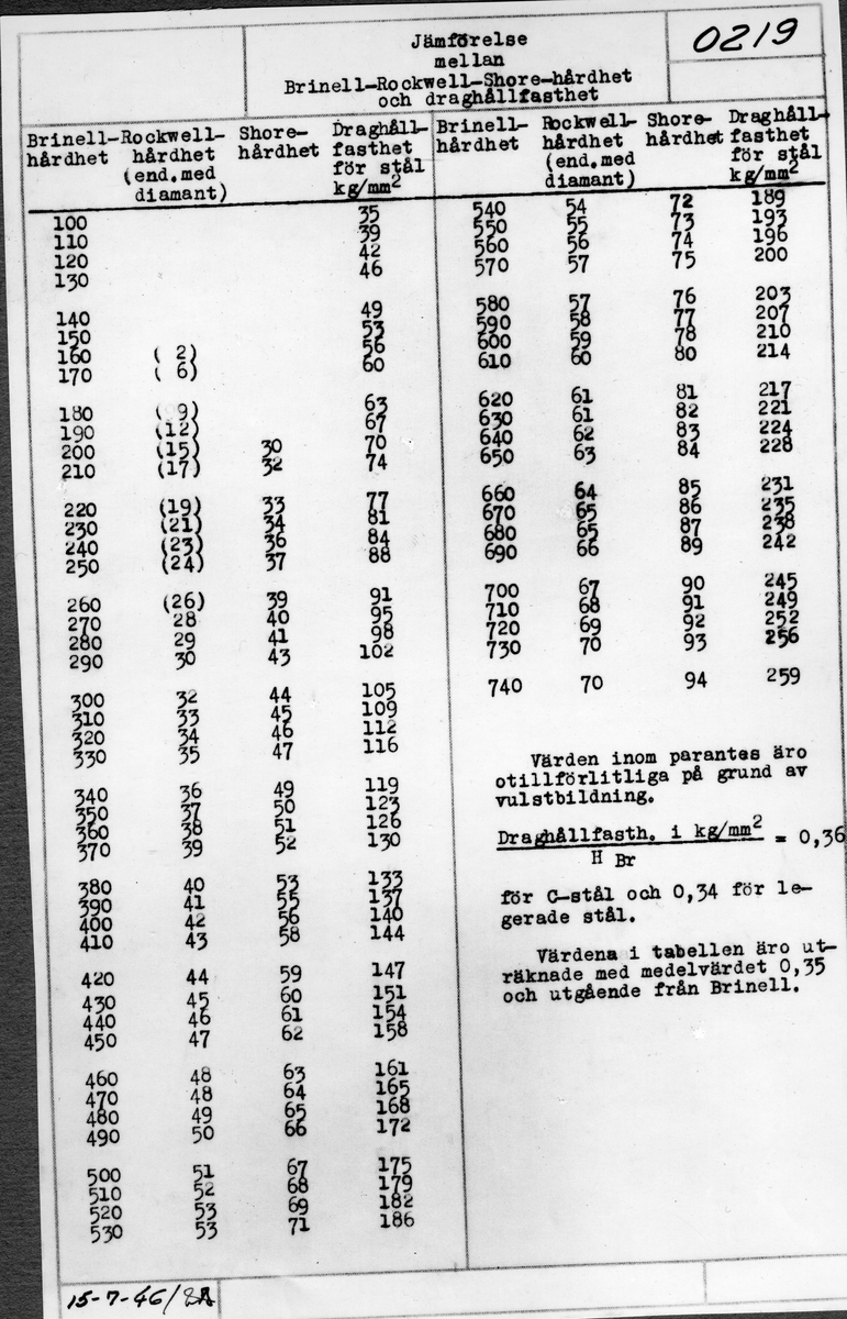Jämförelsetabell mellan Brinell-Rockwell-Shore, hårdhet och draghållfasthet