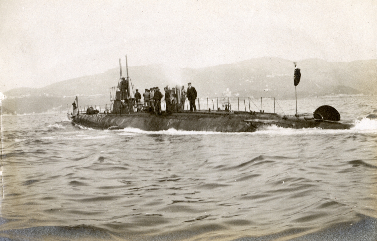 Titel: Personal från varvet Fiat-San Giorgio i La Spezia tar en provtur med ubåten HVALEN.