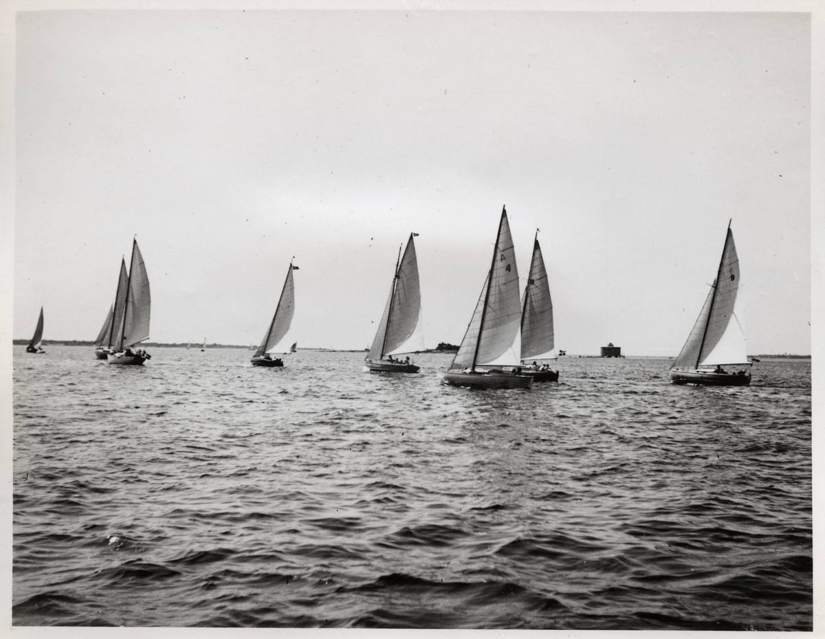 Titel: Flera mindre segelbåtar på havet.