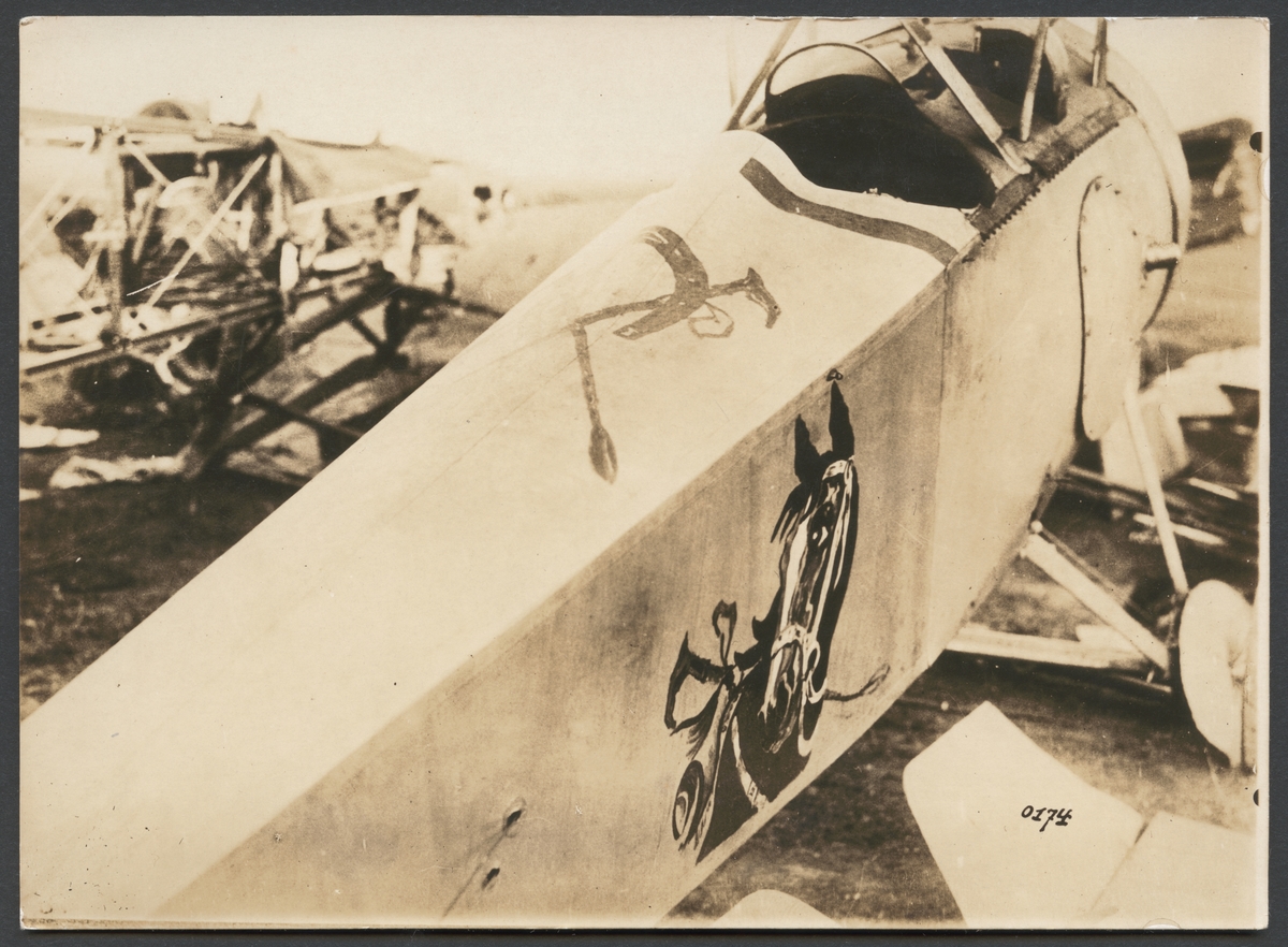 Titel: Bilden visar målningen av en häst som utsmyckning på ett flygplan.