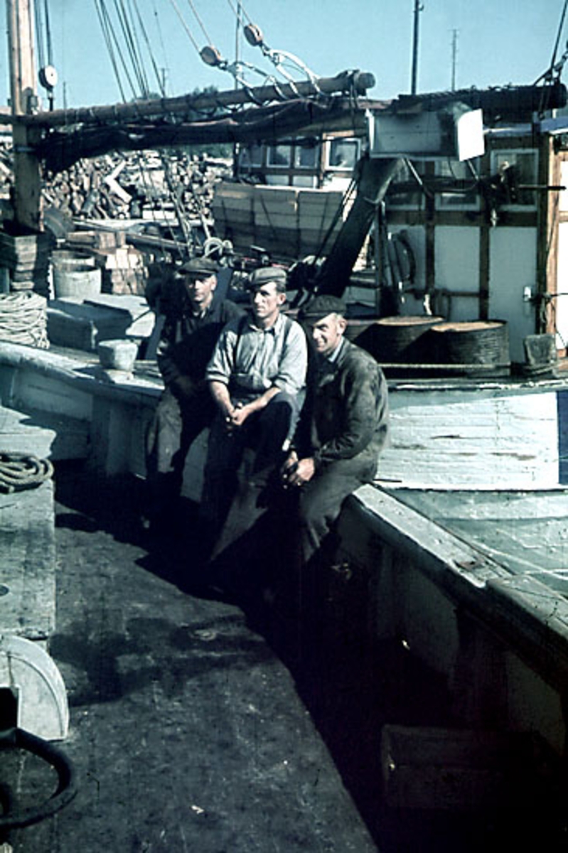 Männen som sitter på relingen är f.v. Hjalmar Utbult, Abel Melin och Helge Utbult (Hjalmar och Helge är ej bröder).