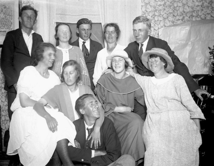 Enligt senare noteringar: "Sven Höglund, Hedvig Carlqvist, Erik i Båtvik i mitten bakerst, Karin Karlsson, Johan Börjesson, Elvira, Tekla Börjesson-Eld, Ville Bergqvist, Klara Lindahl (Smögen) och Ebba Stanne".