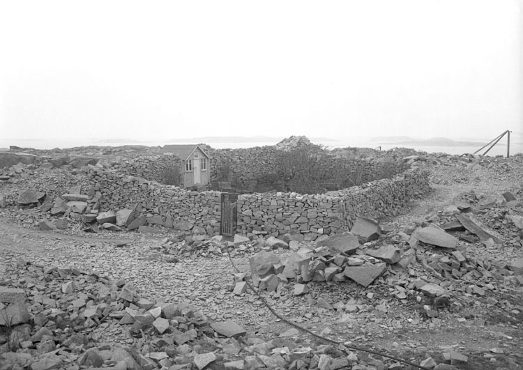 Maj 1924. "Trädgården i stenöknen". Trädgård med hög stenmur i gammalt stenbrott.