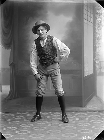 Enligt senare noteringar: "Ateljéfoto av skådespelare i rolldräkt, operett."