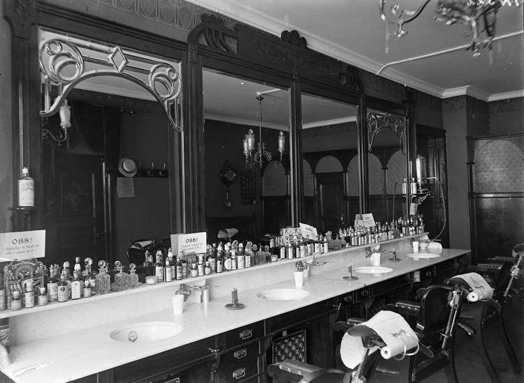 Enligt tidigare noteringar: "Interiör från Rak & Frisersalongen N. Drottninggatan. Osvald Brylla. Rak & Frisersalong."