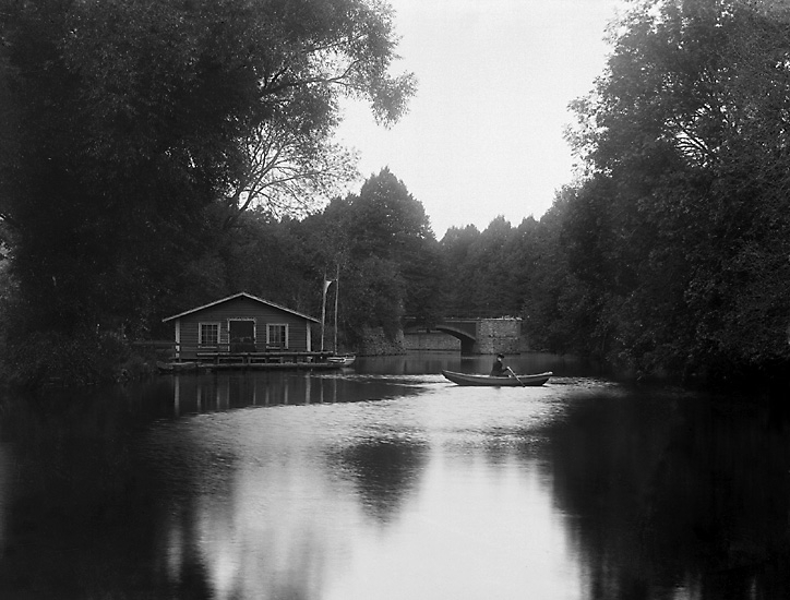 Enligt tidigare notering: "Roddbåt vid tvätthuset på Bäveån ovanför träbron vid Hasselbacken."