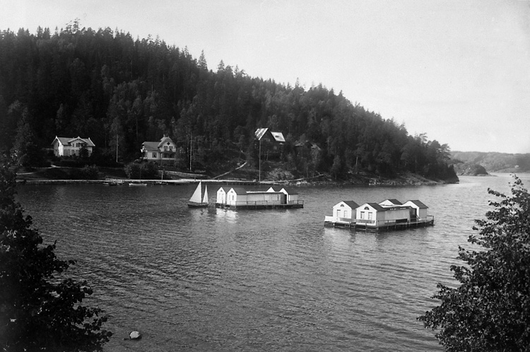 Enligt tidigare notering: "Badorten Gustafsberg, flytande bassänger."