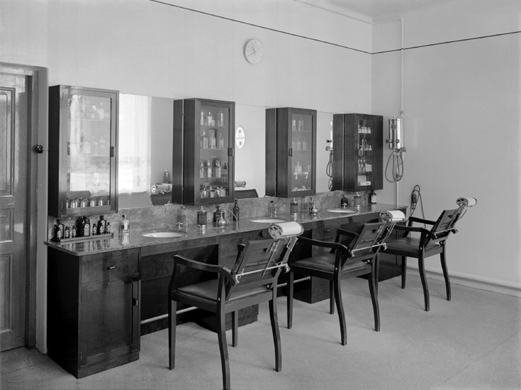 Enligt tidigare notering: "Interiör från Norells frisersalong, Fjällvägen, 1936-07-01."
