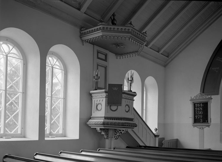 Uppgift enligt fotografen: "Lane Ryr. Kyrkan interiör."