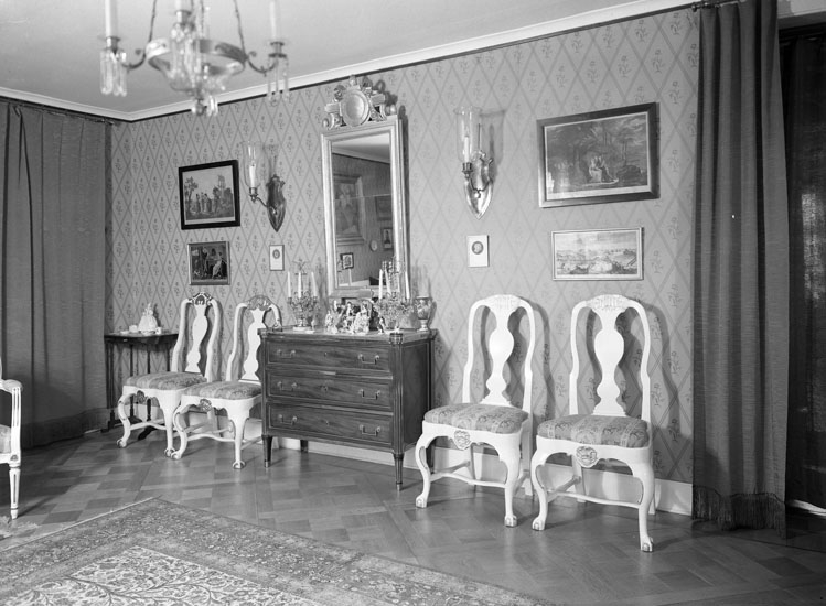 Uppgift enligt fotografen: "Uddevalla. Interiör Fru Evelyn Holm."