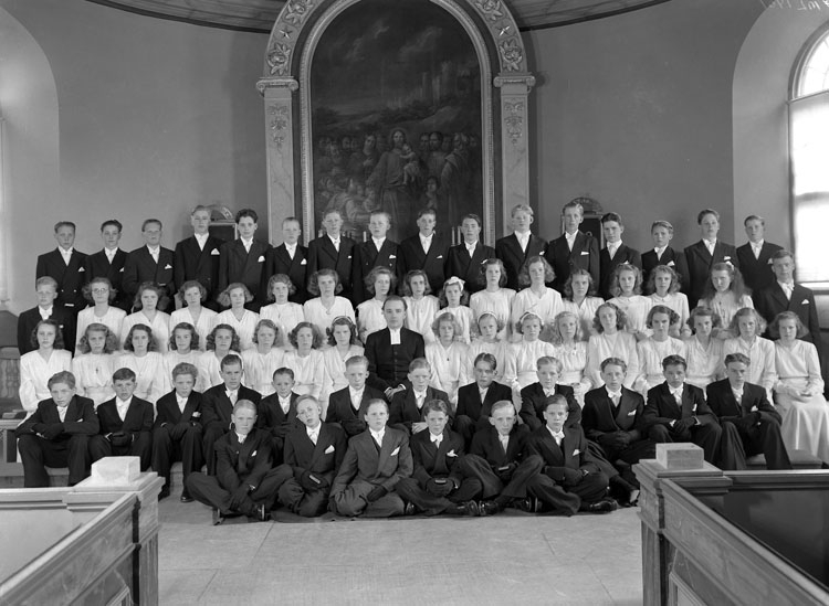 Uppgift enligt fotografen: "Uddevalla. Konfirmation. Pastor Långström."