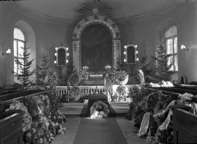 Uppgift enligt fotografen: "Uddevalla. Begravning i kyrkan. Bokhandl. Gustafsson."