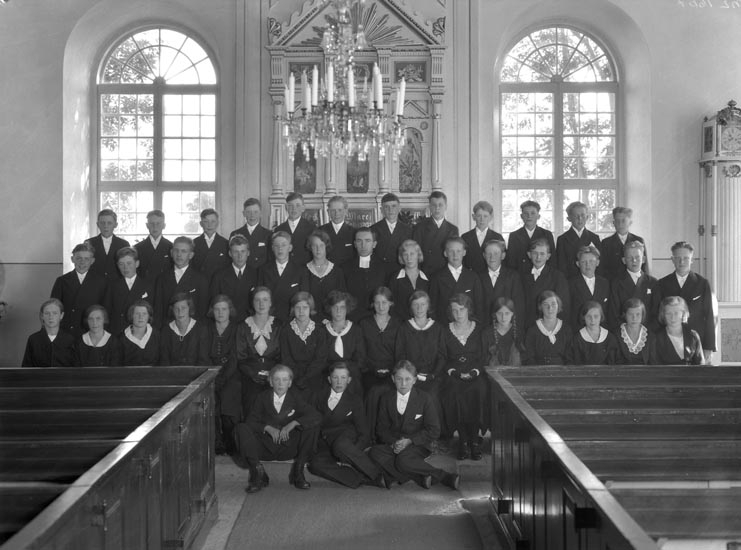 Uppgift enligt fotografen: "Myckleby. konfirmander. Pastor Vikren."