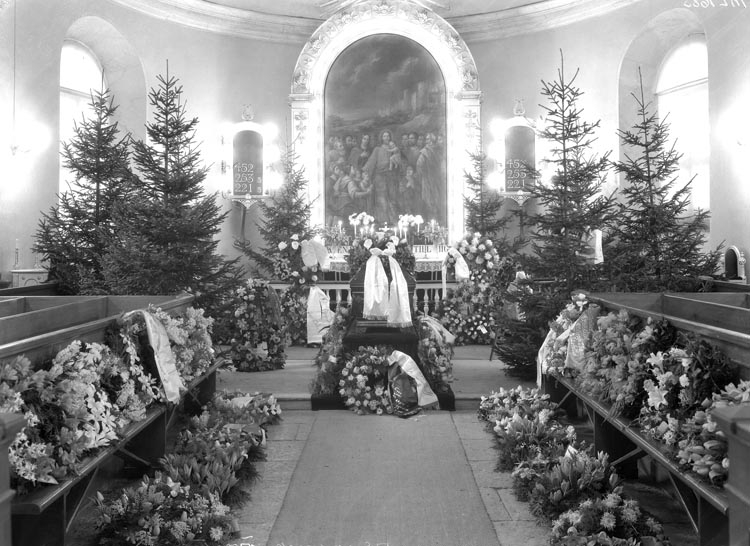 Uppgift enligt fotografen: "Uddevalla. Begravning i kyrkan. Ludv. Hansson."