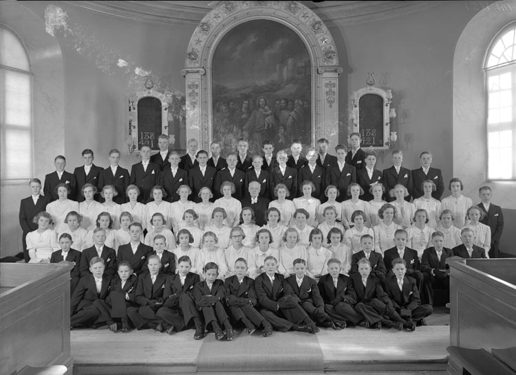 Uppgift enligt fotografen: "Uddevalla. Konfirmander. Pastor Agner."