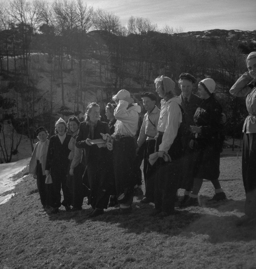 Titel: Text till bilden: "Fältsport. Orienteringspromenad. 1940.03.10".