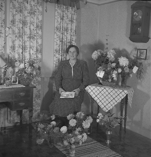 Text till bilden: "Fru Karlsson, Kronbergsgatan 22. 50 år 1945.10.09".