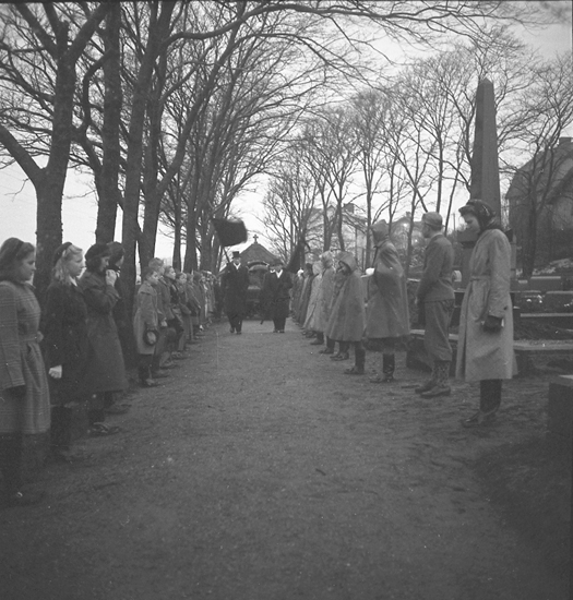 Titel: Text till bilden: "Musikdir. Karl Sandströms begravning. 1948.12.07" i