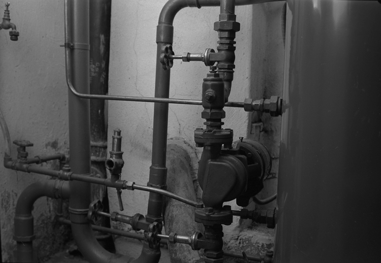 Text till bilden: "Pannrum i Sparbanken. Best. gen. Kons. Ing. Magnus Eriksson, Engelbrektsgatan 55 Göteborg. 1949.05.06"