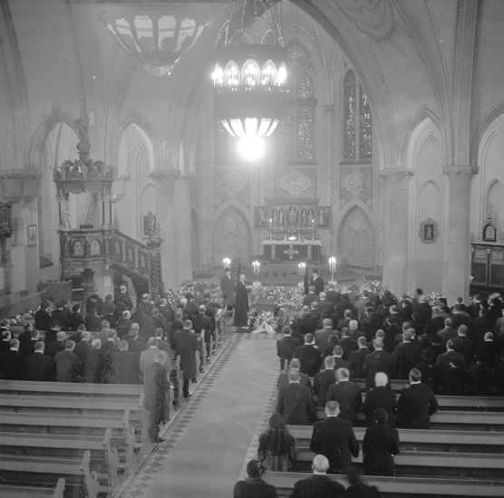 Text till bilden: "Ivar Havstams begravning i kyrkan. 1953.12.01"