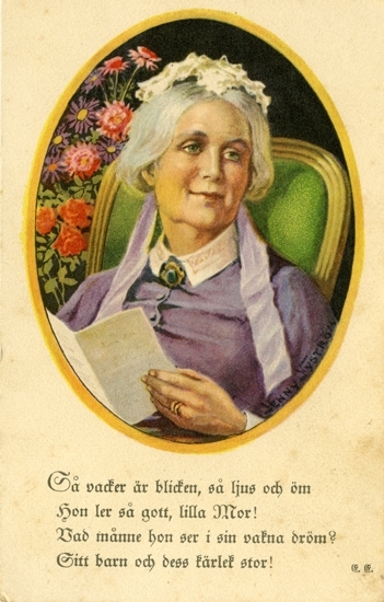 Notering på korte: Så vacker är blicken, så ljus och öm. Hon ler så gott, lilla Mor!