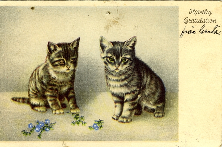 Notering på kortet: Hjärtlig Gratulation från Greta.