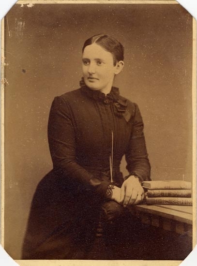 Enl. handskriven text på fotoramens baksida: "Ingrid Ekstrand född Ahlgren född 29 mars 1852 död 15 mars 1921".
