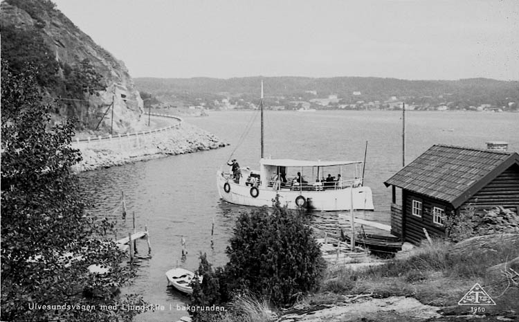 Enligt Bengt Lundins noteringar: "Ulvesund. Turistbåt lägger till vid strandbadet. Vykort TF 3950 BL 1251".