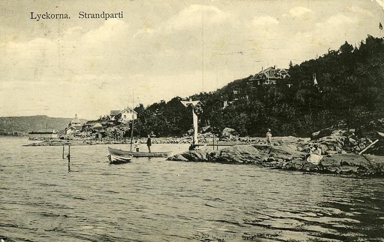 Enligt Bengt Lundins noteringar: "Lyckorna: Strandparti. Herrbad - Underås".