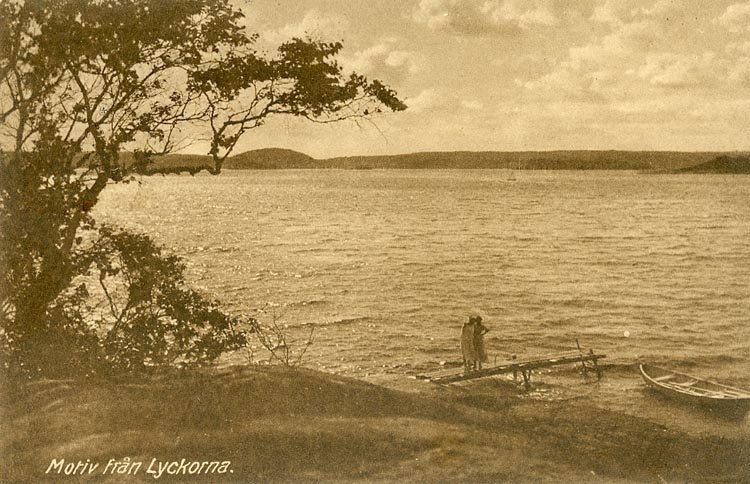 Enligt Bengt Lundins noteringar: "Motiv från Lyckorna. Flickor på bryggan".