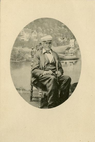 Enligt Bengt Lundins noteringar: "Ateljefoto med ångbåtsbryggan i bakgrunden".